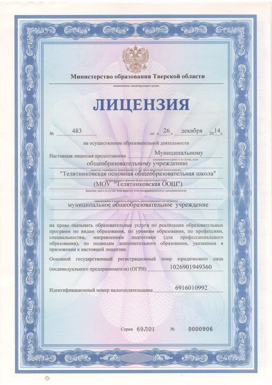 Полное наименование образовательной организации* Муниципальное общеобразовательное учреждение "Телятниковская основная общеобразовательная школа"